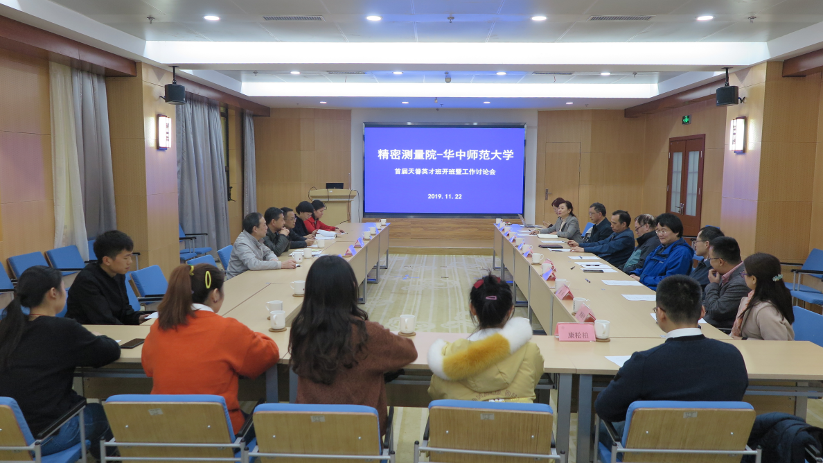 1122日,PA真人国际研究生处组织召开华中师范大学首届“天眷英才班开班仪式暨工作讨论会。华中师范大学物理科学与技术学院党委书记张明生、副院长吴少平、俞云伟、副书记马英、辅导员刘琦及天眷班学生代表一行到访PA真人国际,PA真人国际副院长柳晓军研究员、所长助理王谨研究员、导师代表高克林研究员、刘朝阳研究员等近10位研究生导师出席会议。会议由研究生处处长任晓华主持。