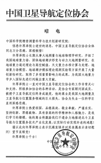 当前位置:PA真人国际 > 专题 > 深切缅怀许厚泽院士 > 各界唁电