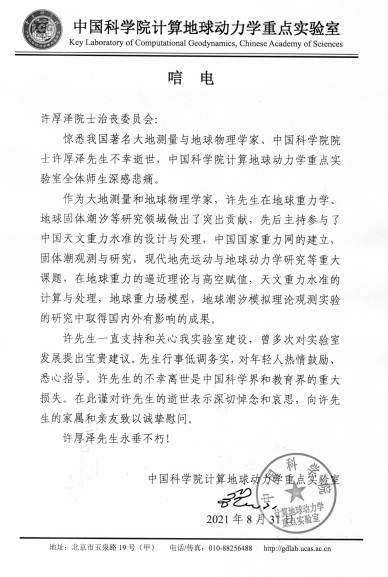 中科院计算地球动力学重点实验室唁电
